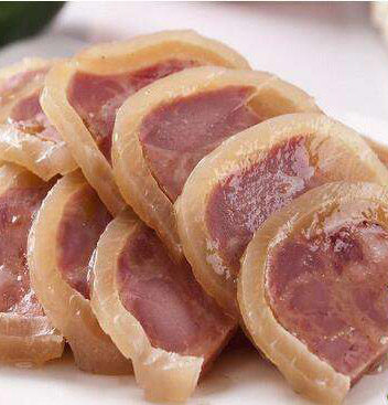 6、晾凉后的 捆蹄去掉棉线,切成片即可,可以直接吃也可以沾点蒜蓉香醋。